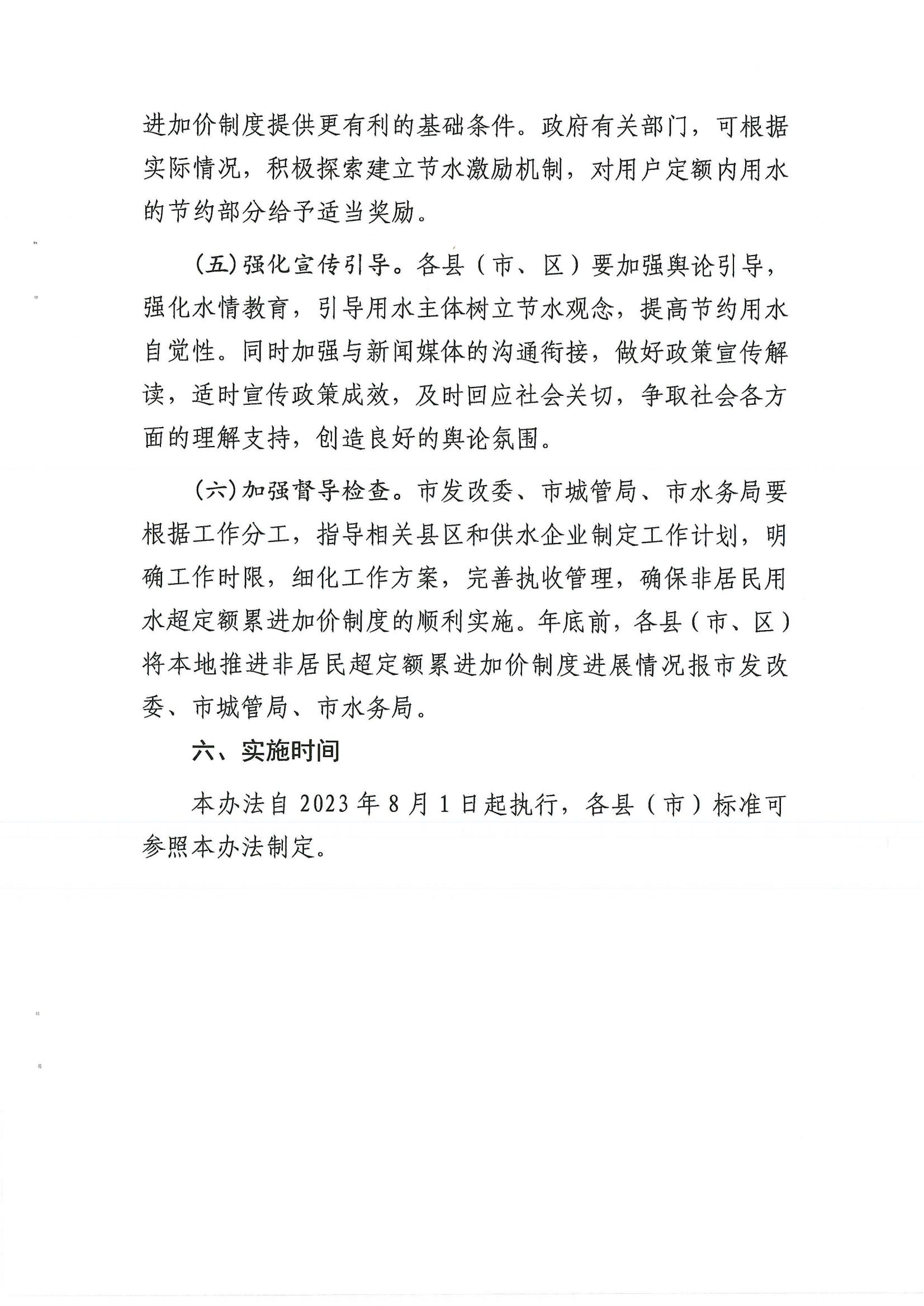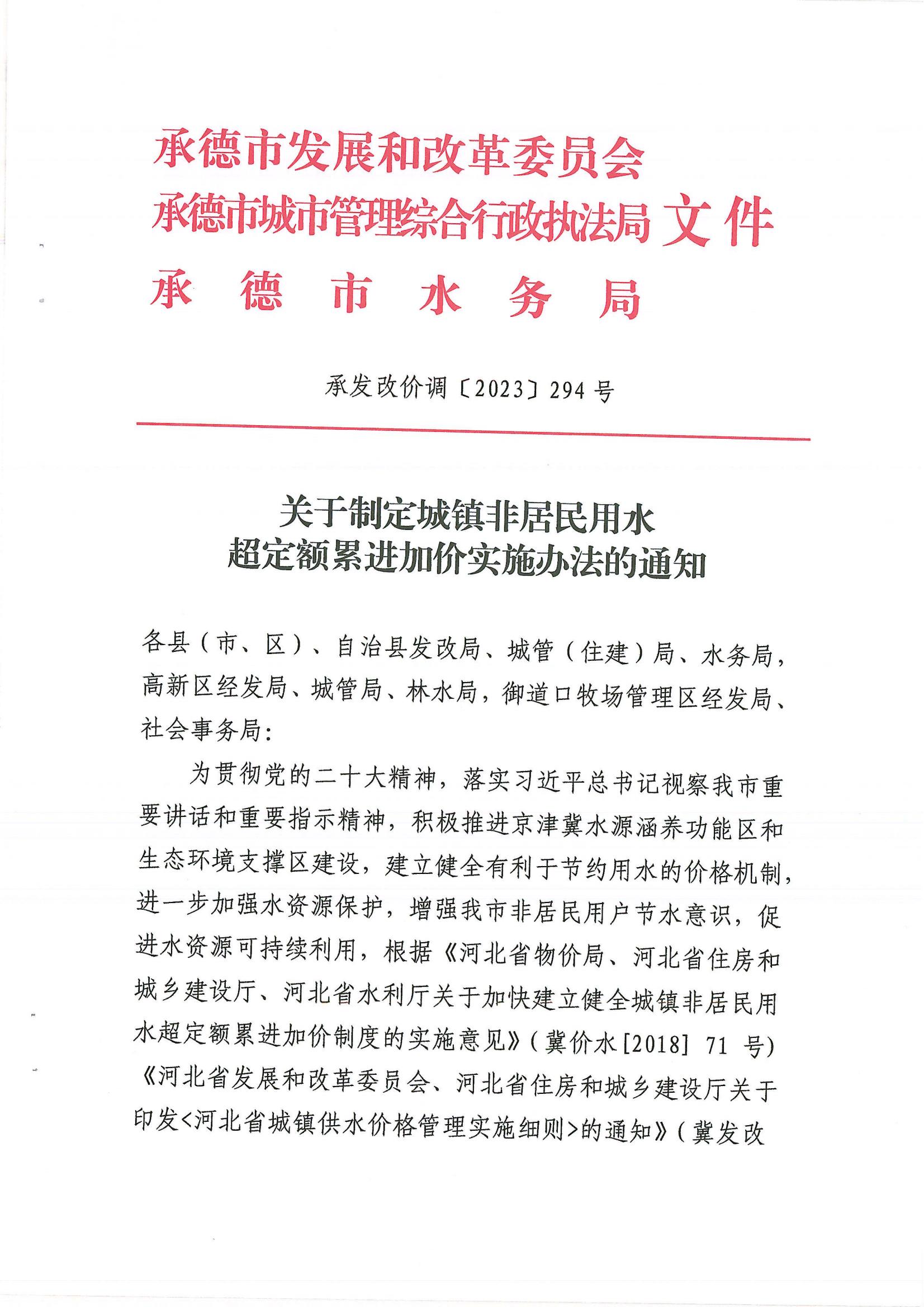 承德市發(fā)展和改革委員會等三部門關(guān)于制定城鎮(zhèn)非居民用水超定額累進(jìn)加價實施辦法的通知 承發(fā)改價調(diào)〔2023〕294號